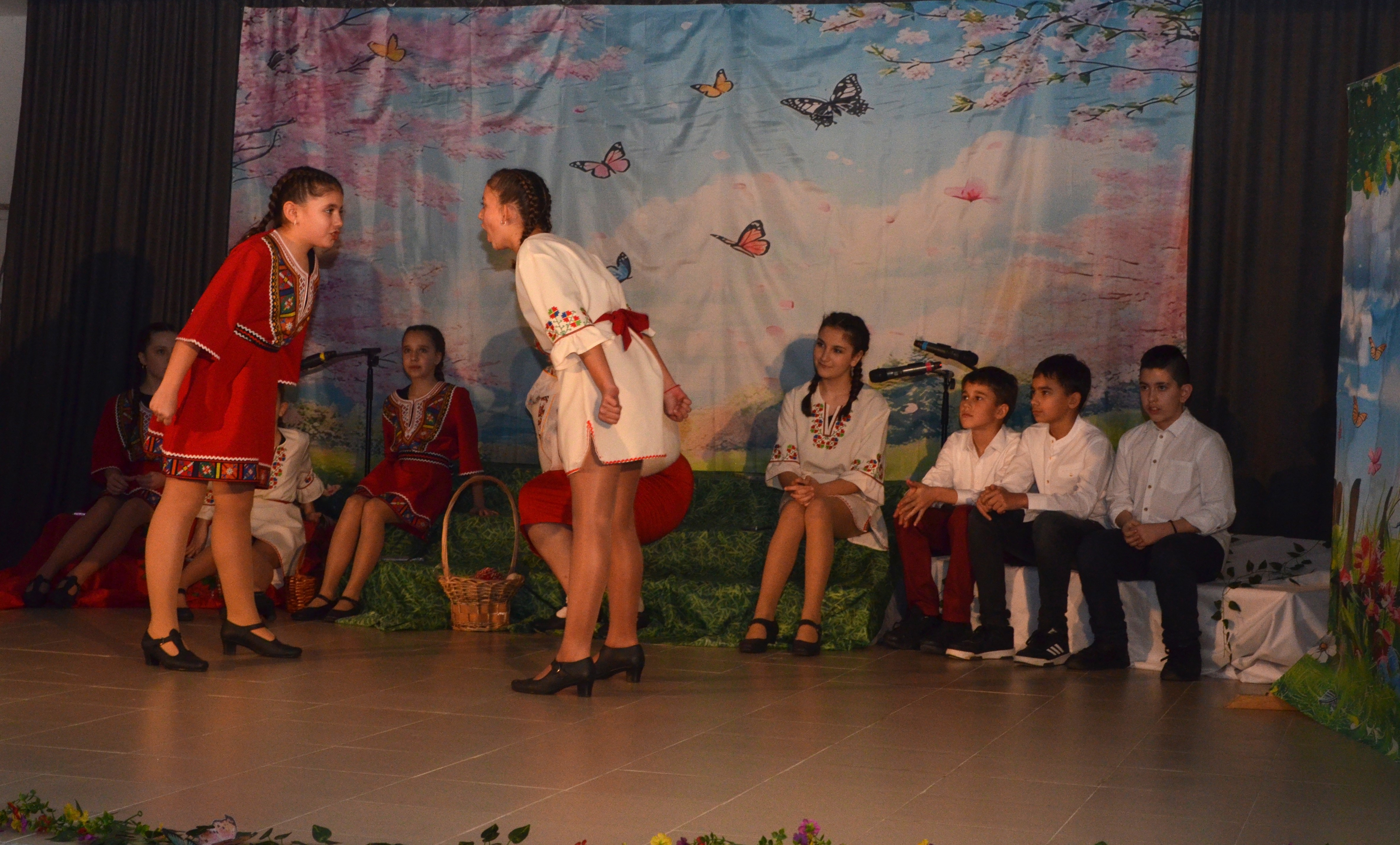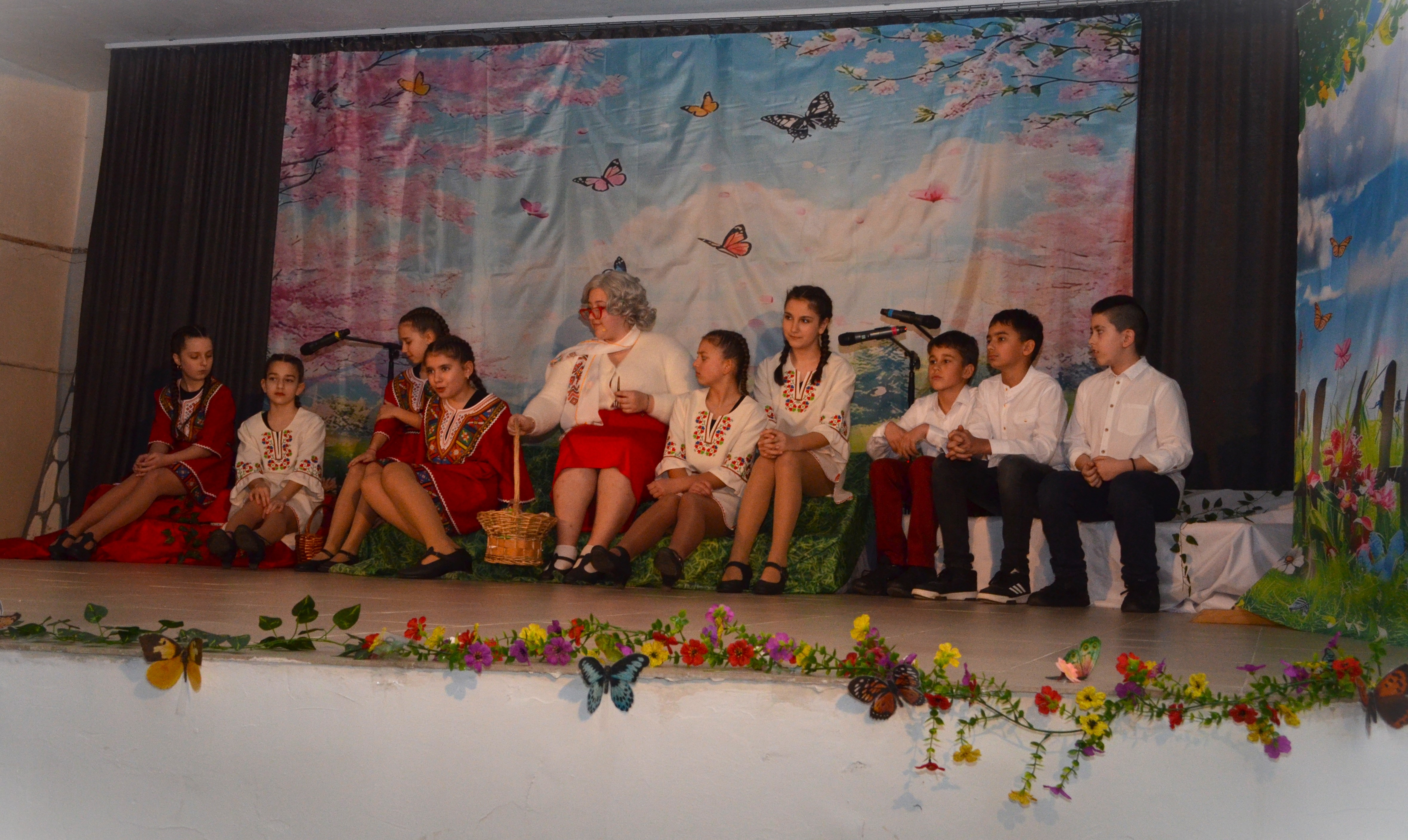 Сцената оживя благодарение на малките и големи артисти от 1. до 9. клас. Участниците в извънкласните форми „Художествено слово“ (с ръководител Златина Матева) и „Народни танци“ (с ръководител Антонина Михалева) преведоха публиката през история, изпълнена с мъдри поуки, смях и завладяващи български ритми.