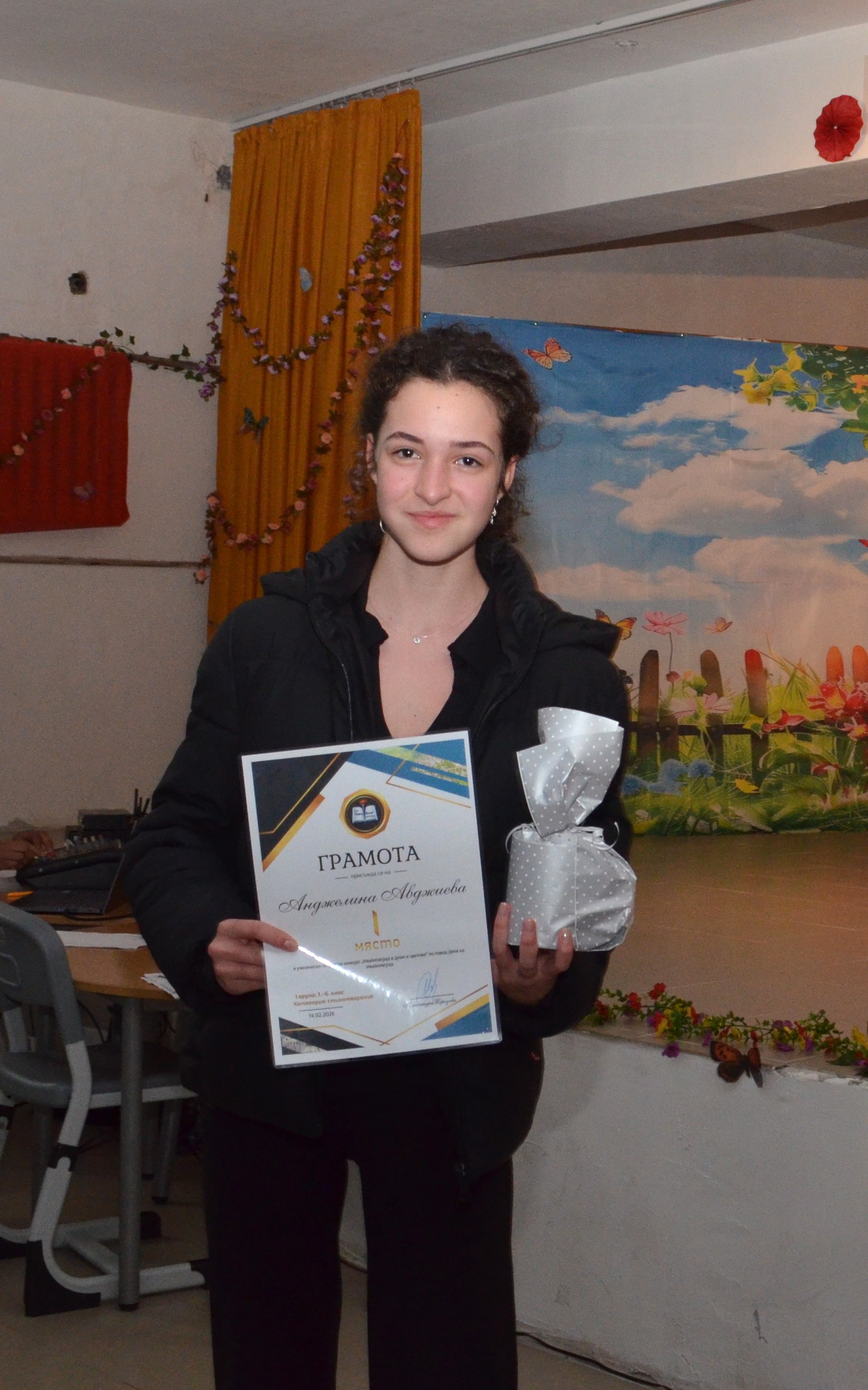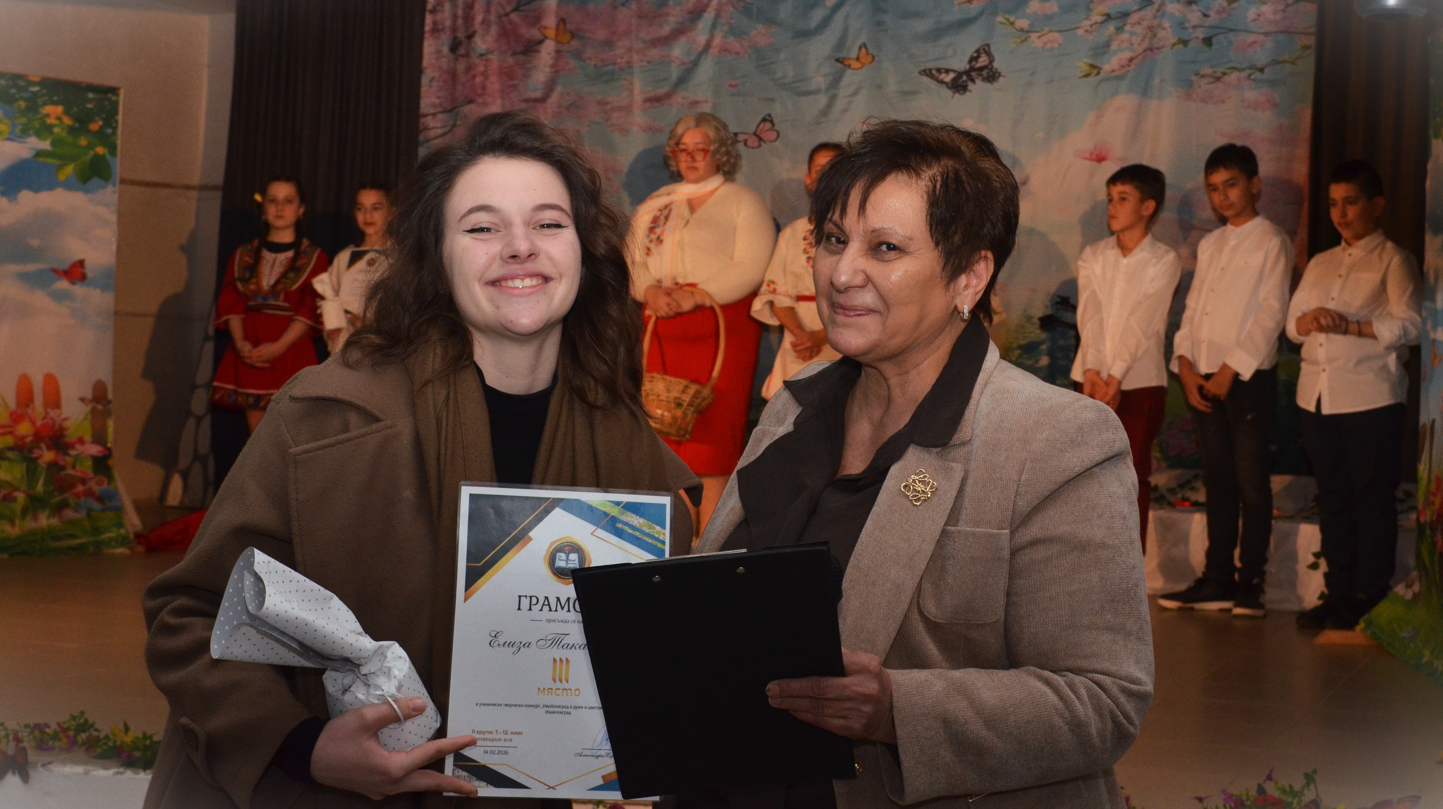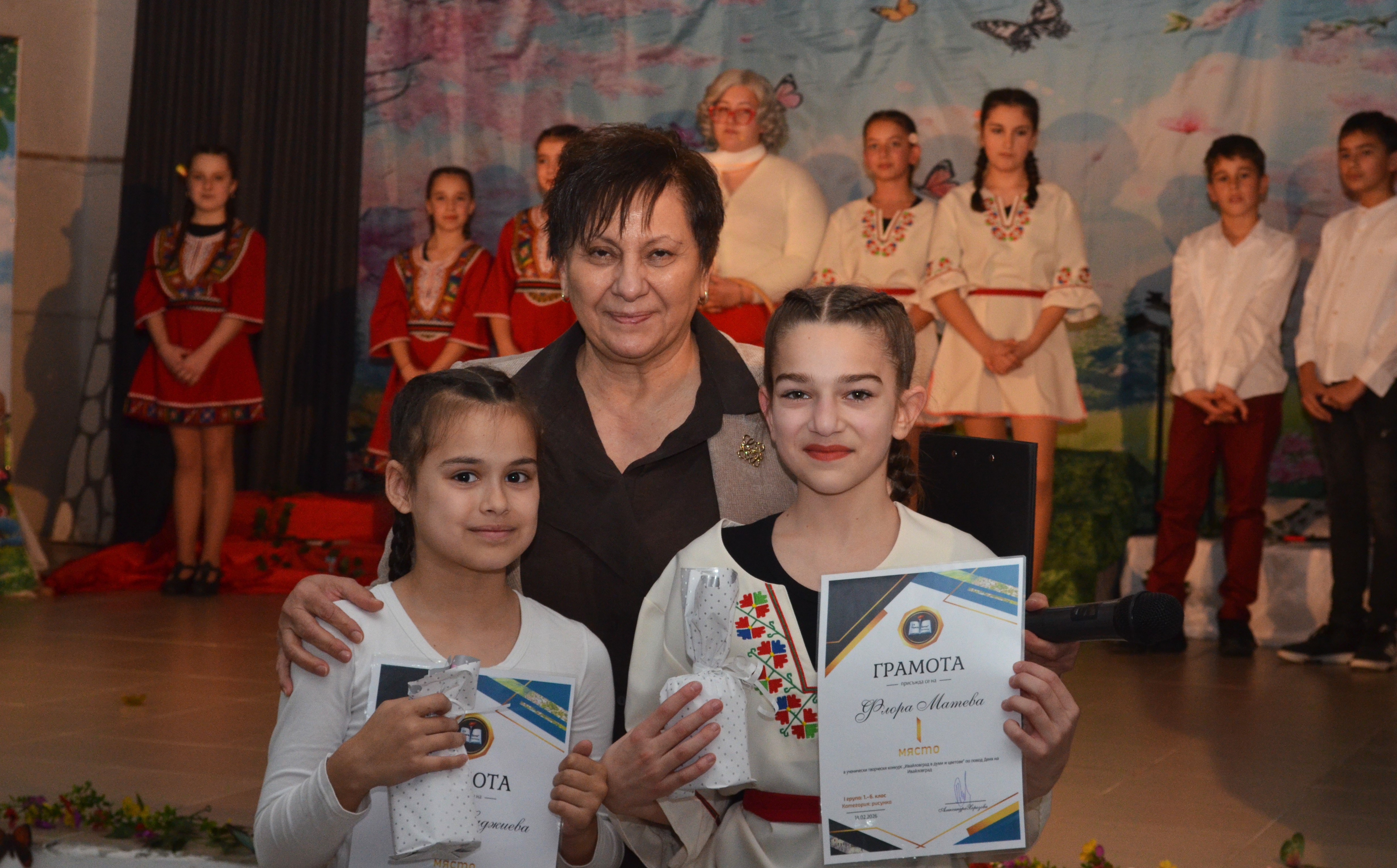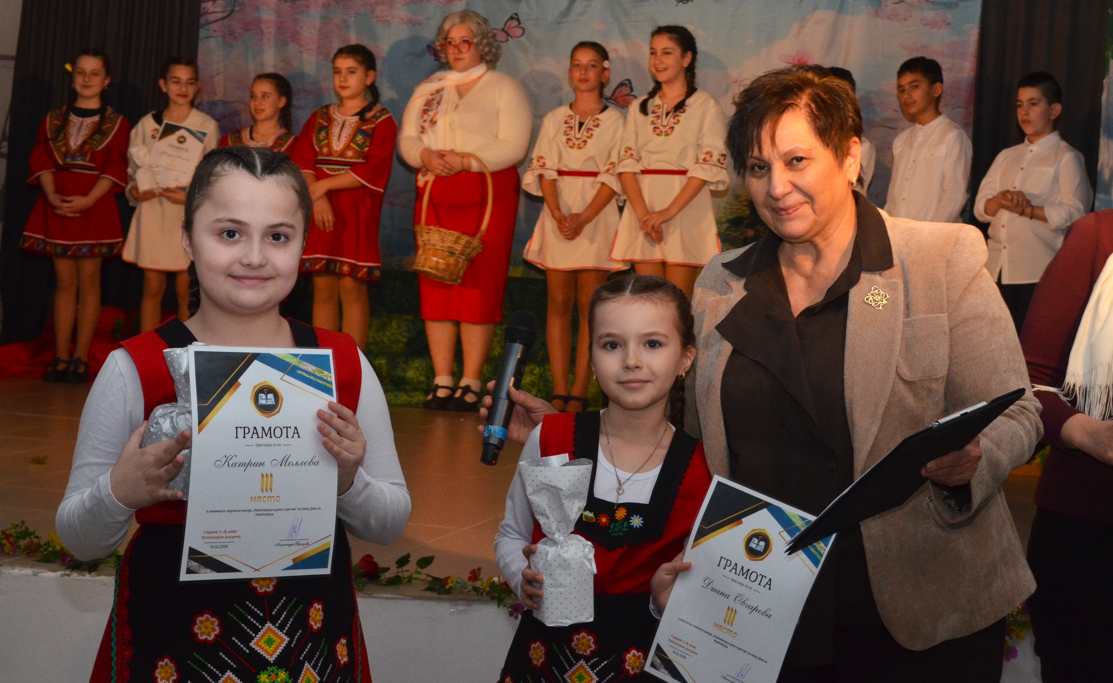 Завършек на тържеството постави директорът на училището, г-жа Александра Хорозова, която връчи грамоти на победителите, както и на всички участници, включили се в конкурса „Ивайловград в думи и цветове“, посветена на Деня на града – 14 февруари.