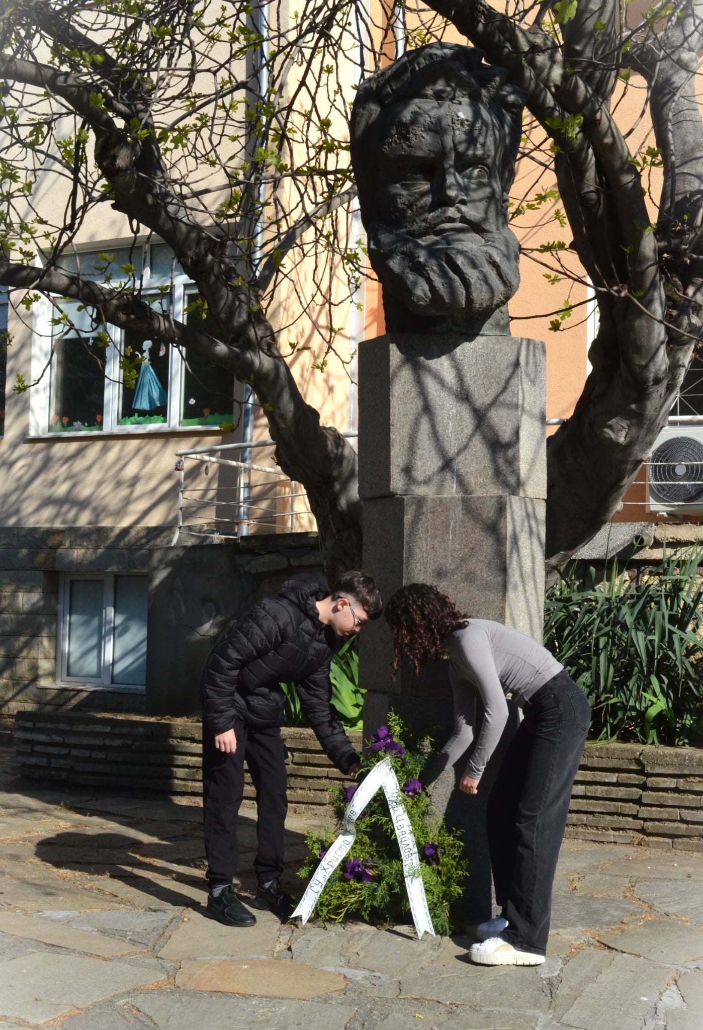 В знак на дълбока почит бе поднесен венец пред паметника на Христо Ботев в двора на училището. С минута мълчание ученици и учители се поклониха пред саможертвата на всички, дали живота си за свободата на отечеството.