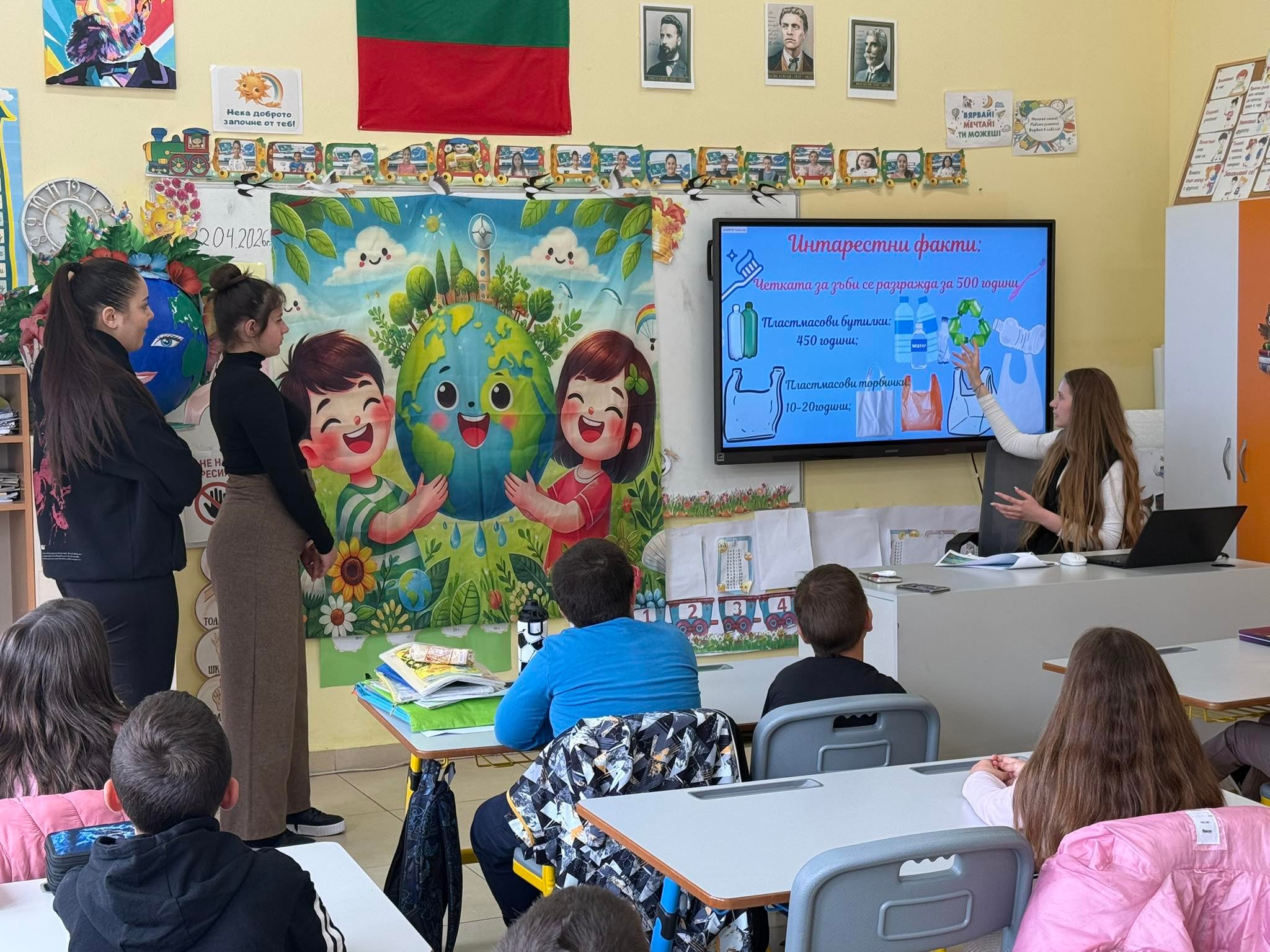 С вдъхновение, усмивки и грижа за природата, днес в СУ „Христо Ботев“ – Ивайловград се проведе училищно мероприятие, посветено на Деня на Земята. Тази година денят се отбелязва под надслов „Нашата сила, нашата планета“ – послание, което обединява хората по целия свят около идеята за по-чиста и устойчива среда. Кампанията призовава общностите да предприемат реални действия в подкрепа на чистия въздух, чистата вода, чистата енергия, защитата на природните ресурси и климатичната стабилност. Инициативата в училището бе реализирана от учениците от 10. А клас, профил „Природни науки“. С много креативност и ентусиазъм те създадоха интерактивни презентации и забавни образователни игри, чрез които по достъпен и увлекателен начин представиха важни екологични теми. В събитието активно се включиха учениците от 2. а и 2. б клас, участници в ИД „Екология“. Малките ученици с любопитство и желание се потопиха в света на природата, показвайки знания, отговорност и загриженост към околната среда. Мероприятието премина в позитивна и вдъхновяваща атмосфера, изпълнена с енергия и желание за промяна, и остави траен отпечатък в съзнанието на всички участници – че дори малките стъпки водят до големи промени за нашата планета.