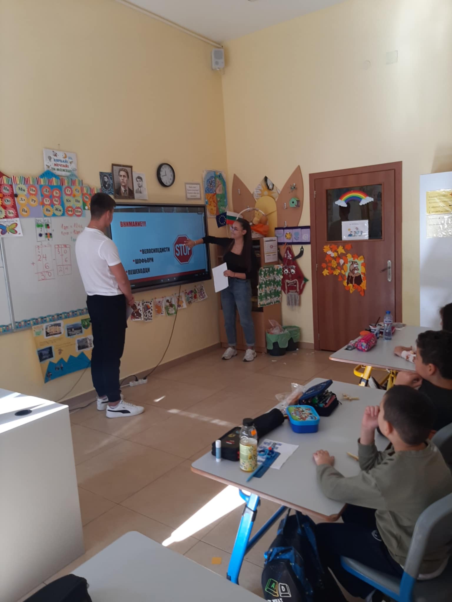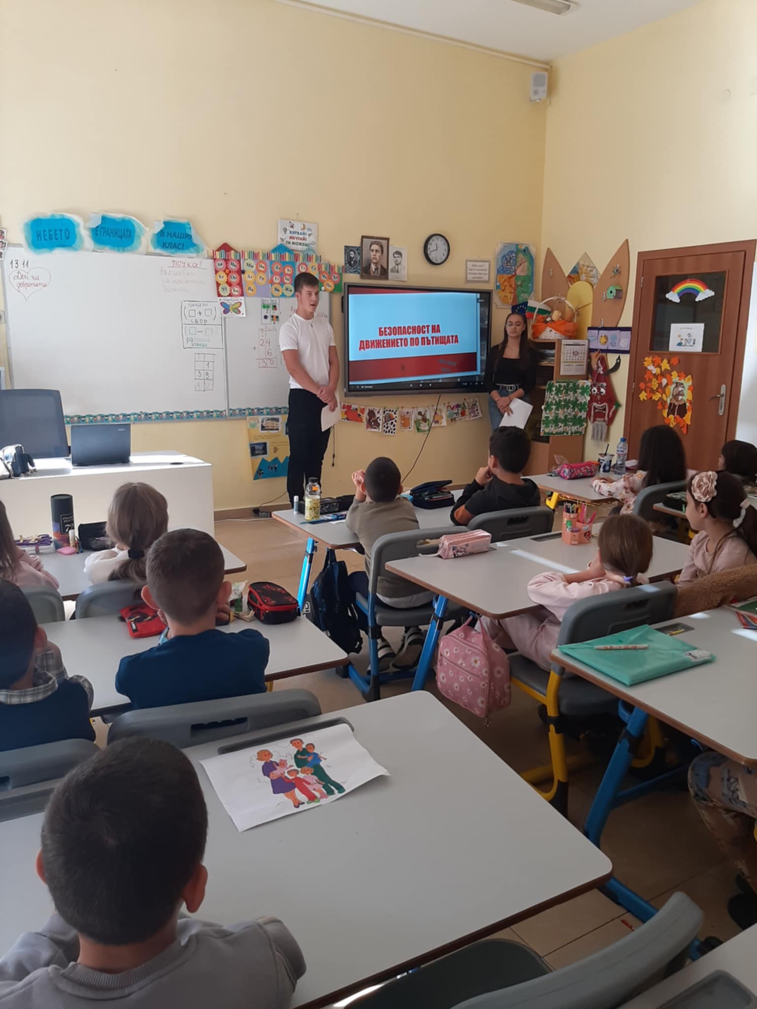 Големите ученици подготвиха интересна и интерактивна презентация, в която чрез снимки, кратки видеа и реални примери показаха колко е важно да се спазват правилата за движение. Малките зрители активно се включваха, задаваха въпроси и споделяха свои преживявания.